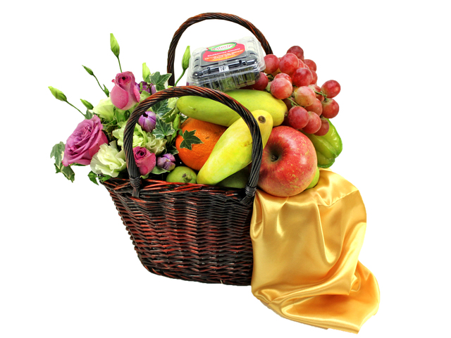 - 可爱鲜花果篮内有六款新鲜水果(标准果量大约9-12pcs)(水果重量约为3KG/8LB)