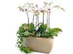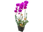 Reasons for recommendations: This flower stand arrangement delivers sense of exquisite and fancy. The two puffy clusters of blue and pink hydrangeas pumps up the size yet withholding any aggression. The romantic purple roses and Thai orchids give the flower arrangement layers, the green authuriums adds tone of balance. The fluffy horsetail grass and bouncy oriental cat-tail topping contribute to the vivid and dynamic look.