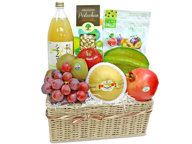The basket includes imported kiwi fruit, grapes in box, Korean Housui Pear, etc. and the following products.