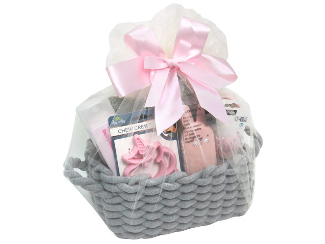 此婴儿礼物组合以网纱包装